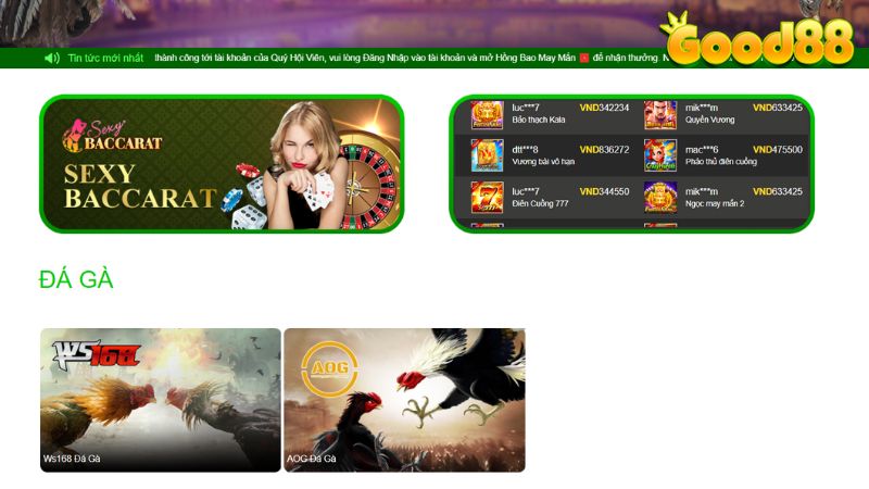 Đá gà Good88 là trò chơi truyền thống đầy tính dân gian, đã được hiện đại hóa và đưa lên nền tảng trực tuyến. Sảnh chơi này nổi bật với các trận đấu kịch tính, mang đến trải nghiệm cá cược hấp dẫn không kém so với thực tế. Với chất lượng hình ảnh trực tiếp sắc nét, tốc độ nhanh, và sự minh bạch trong từng trận đấu, Good88 đang trở thành lựa chọn hàng đầu cho những ai đam mê môn đá gà.